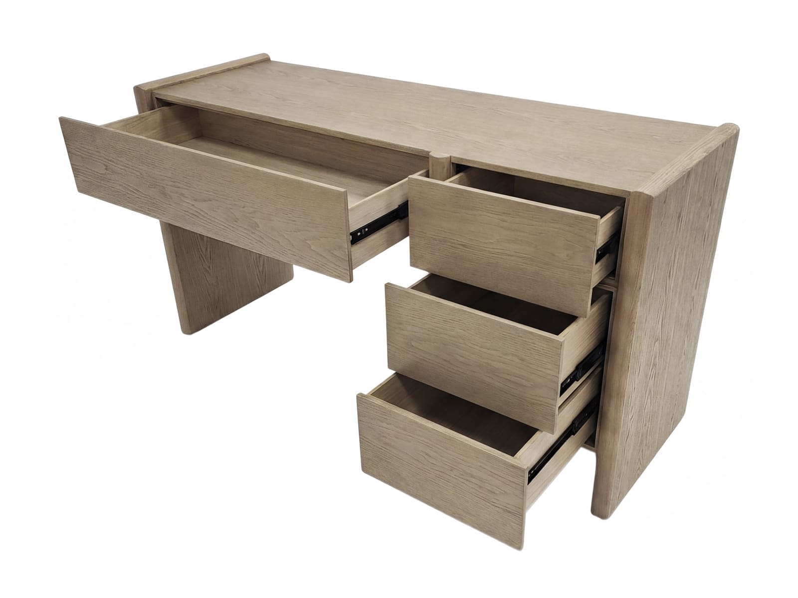 | Características | OTRA MEDIDA: 96x50x58 cms. (espacio libre debajo) OTRA MEDIDA: 90x38x12 cms. (espacio interior cajón grande) OTRA MEDIDA: 35x38x12 cms. (espacio interior de cada uno de los 3 cajones laterales) MATERIAL: chapado fresno lavado |