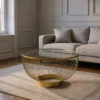 MESA CENTRO NATURAL-VERDE MADERA-MÁRMOL 80 X 80 X 35 CM