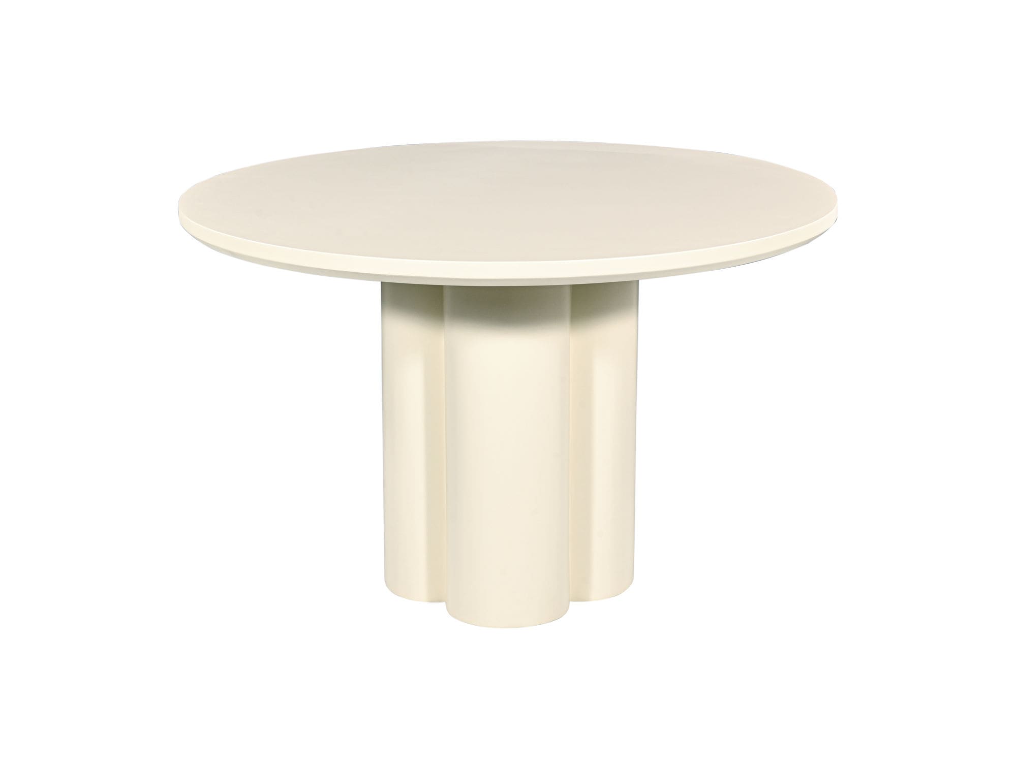 - Mesa de comedor redonda en MDF con acabado crema, de diseño contemporáneo y original.