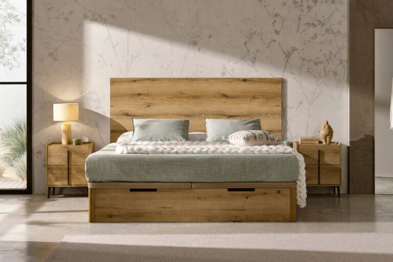 Siège GAP 160 x 200 en chêne avec poignée en nickel.