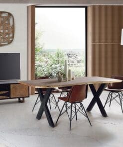 - MESA DE COMEDOR EN MADERA DE ACACIA Y BASE DE METAL. (GROSOR DE LA TAPA 35mm).