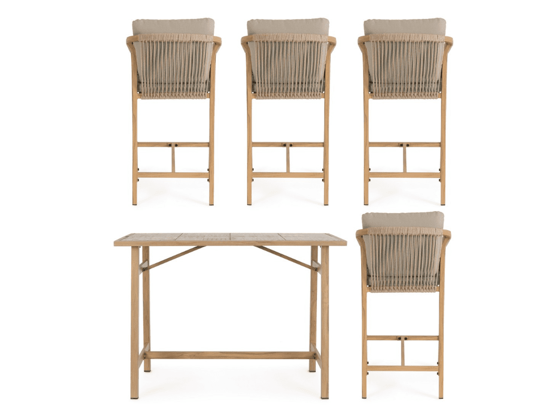 SET MESA BAR+4 TABURETES KALIMERA DESERT