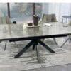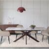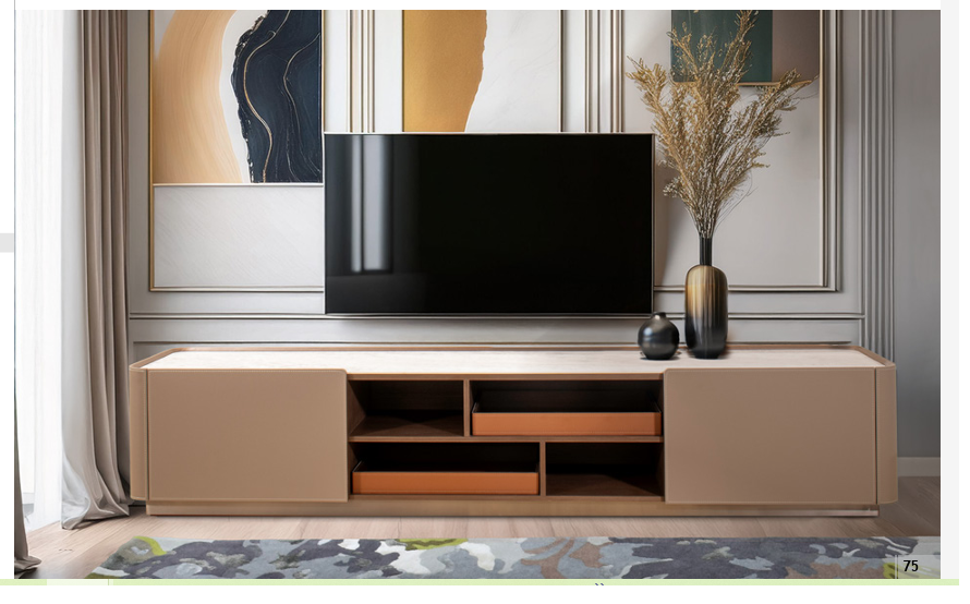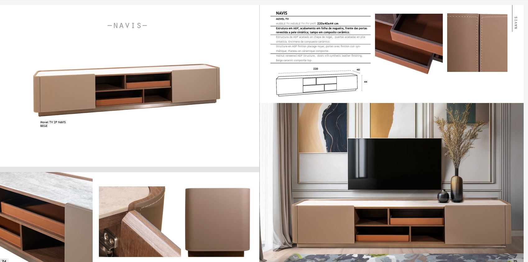 - Estructura de MDF acabado en chapa de nogal, puertas acabadas en piel sintética, encimera de compuesto cerámico.